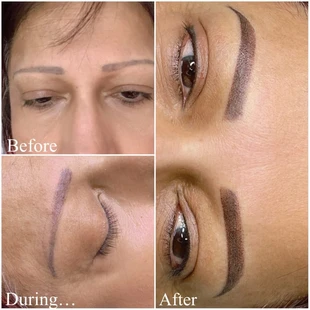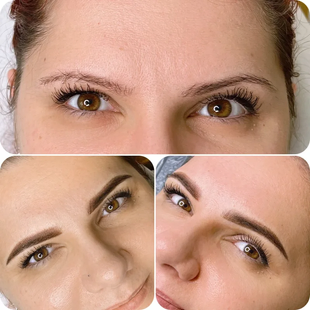 Powder/Ombré Brows is a treatment that uses a special shading technique for achieving natural-looking eyebrows with a powder effect. It uses a combination of dots and shading to fill in the brows, making them look fuller and more symmetrical. A touch-up session is usually required 6-8 weeks after the initial treatment.